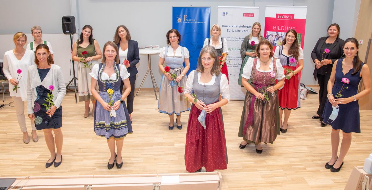 der Master in Early Life Care im neuen Auditorium der PMU verliehen. Trotz der Einschränkungen