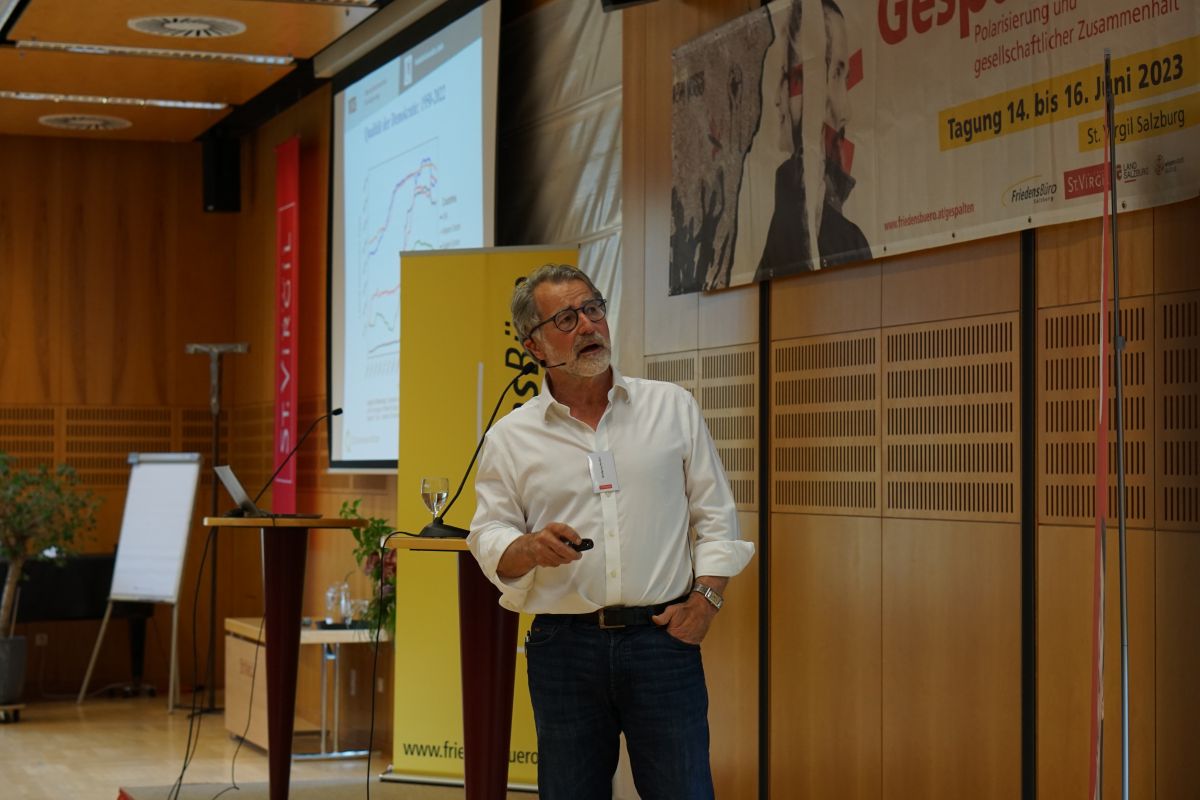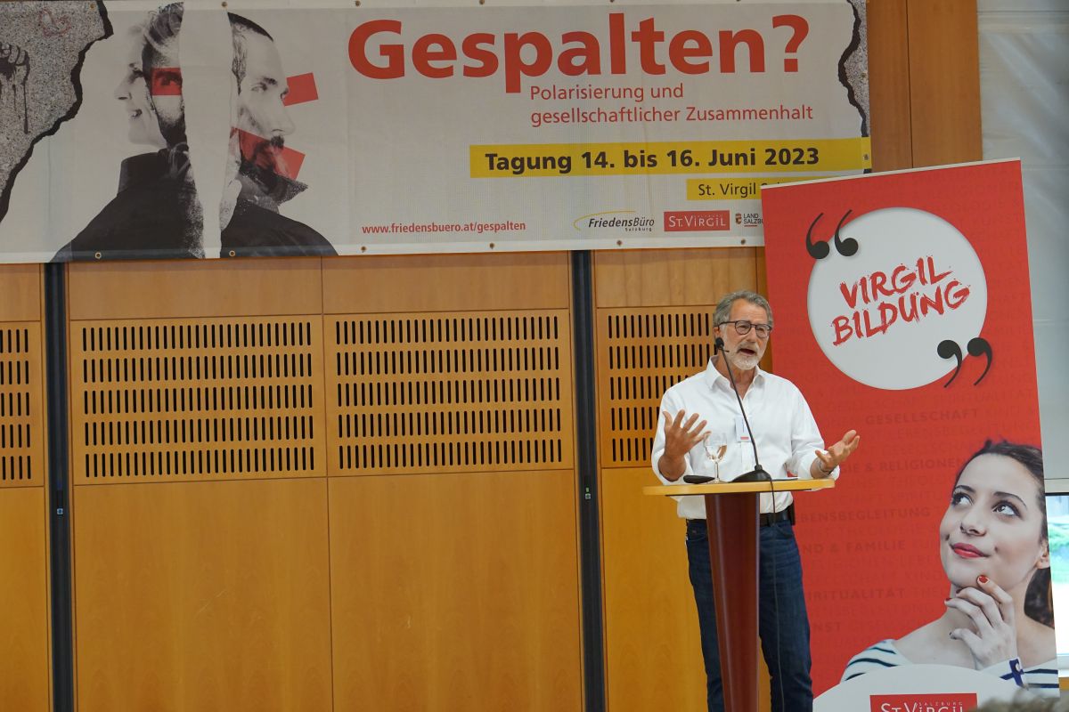 230 Personen aus allen Bereichen der Gesellschaft versammelten sich von 14. bis 16. Juni in St. Virgil, um über Polarisierung zu diskutieren und Lösungsansätze zu erarbeiten, wie gesellschaftlicher Zusammenhalt auch in stürmischen Zeiten gelingen kann. Als Speaker waren unter anderem Wolfgang Merkel (Politikwissenschaftler, Humboldt-Universität Berlin), Rudolf Anschober (Bundesminister a.D.), Christian Felber (Autor), Kateryna Mishchenko (ukrainische Autorin) und Markus Pausch (Politikwissenschaftler, FH Salzburg) zugegen.